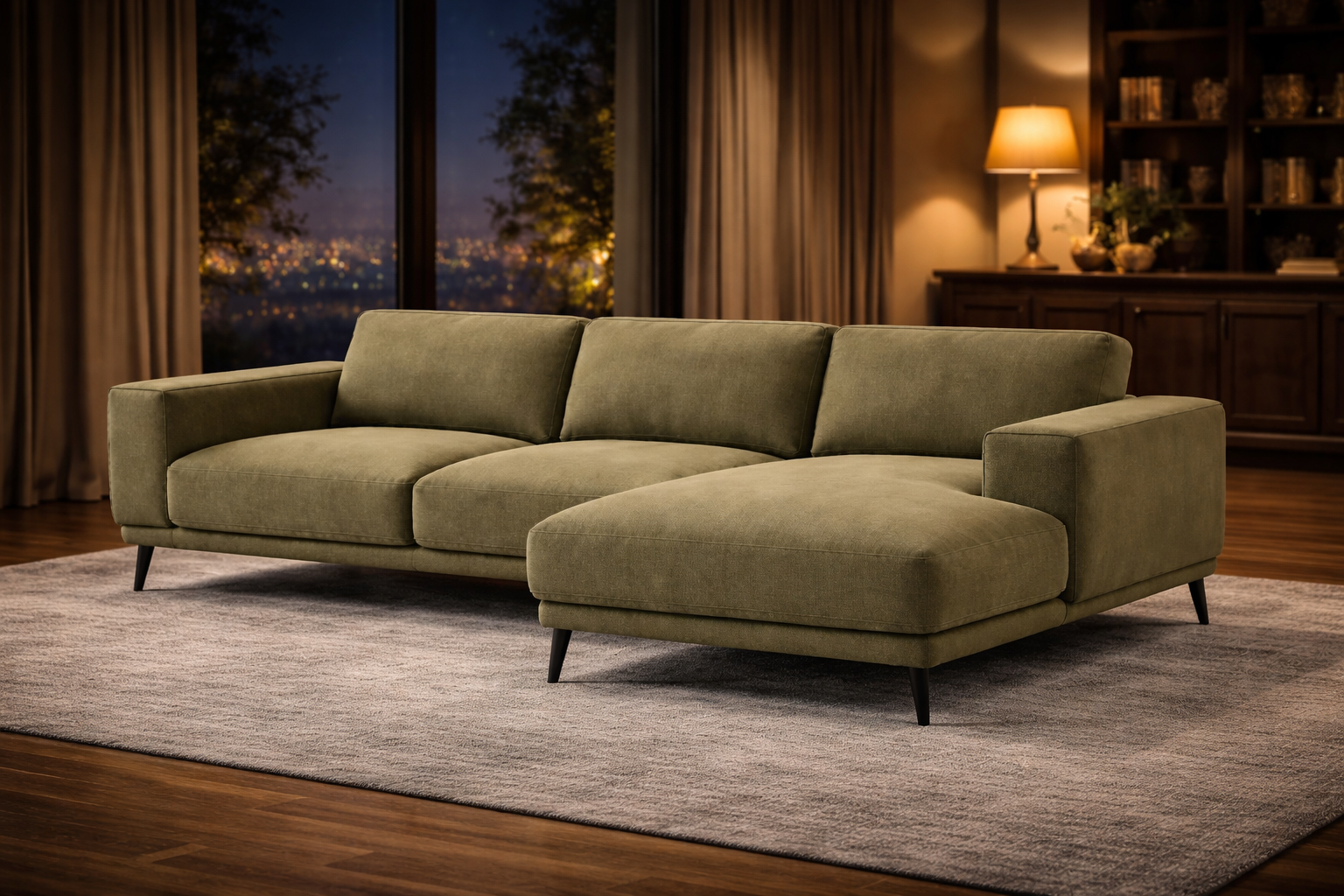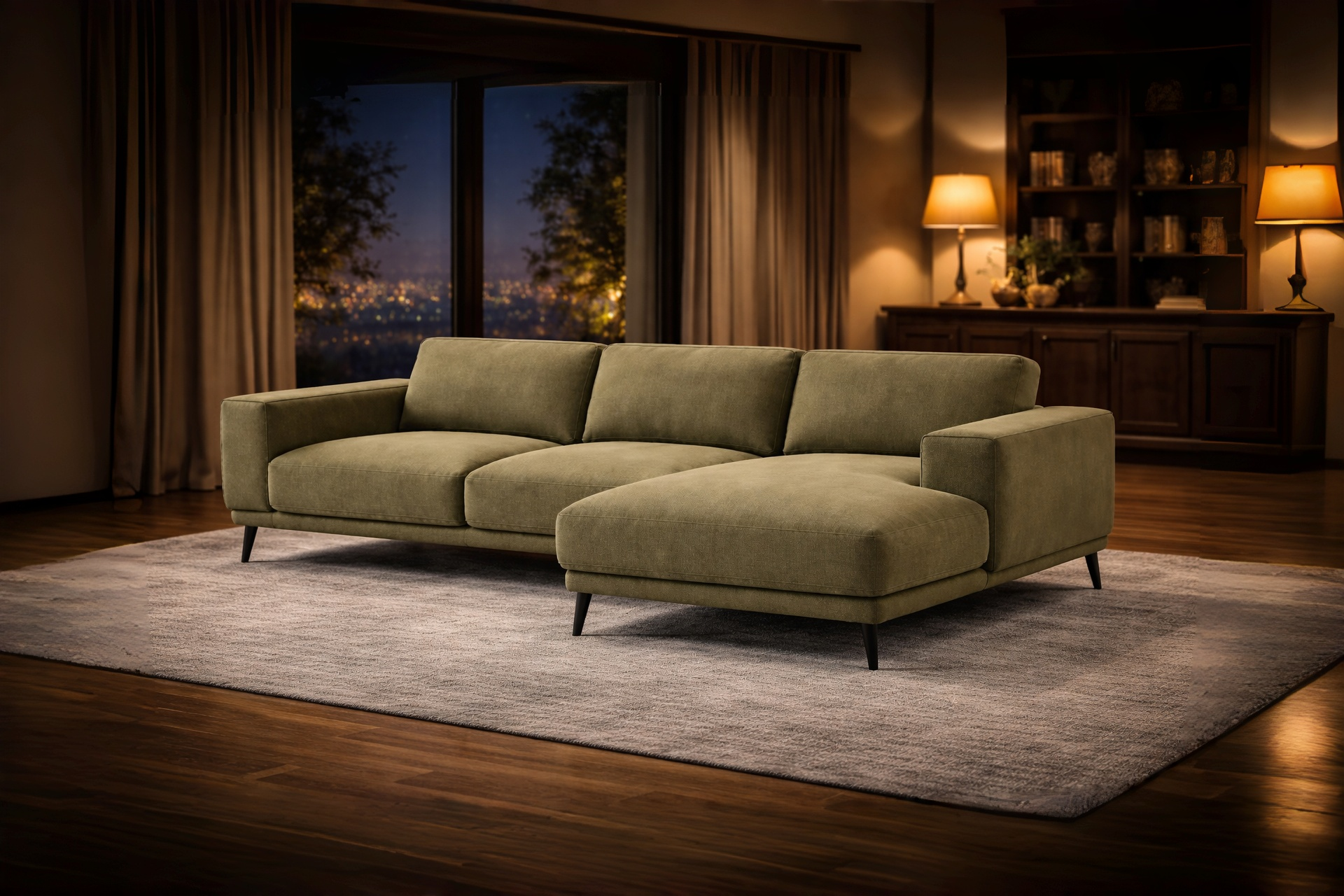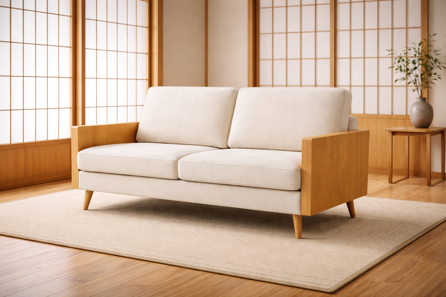 Canapé en tissu beige et bois