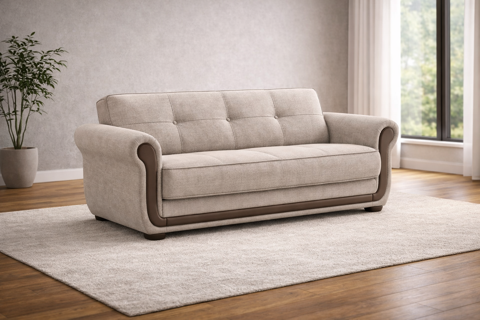 Canapé en tissu beige et marron