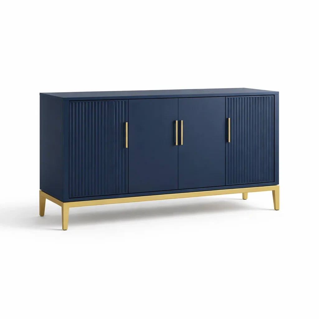 Buffet rectangulaire bleu avec pieds en métal doré
