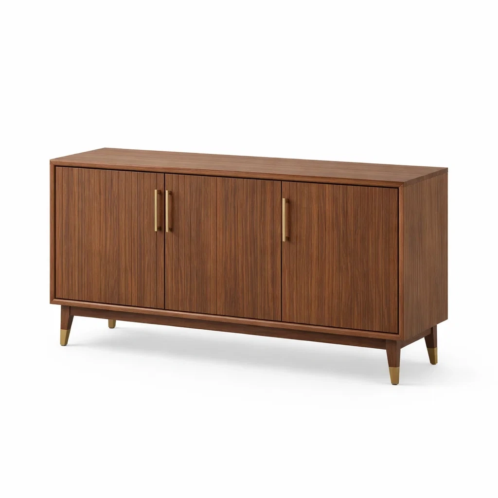Buffet en bois de noyer avec portes et pieds en métal doré