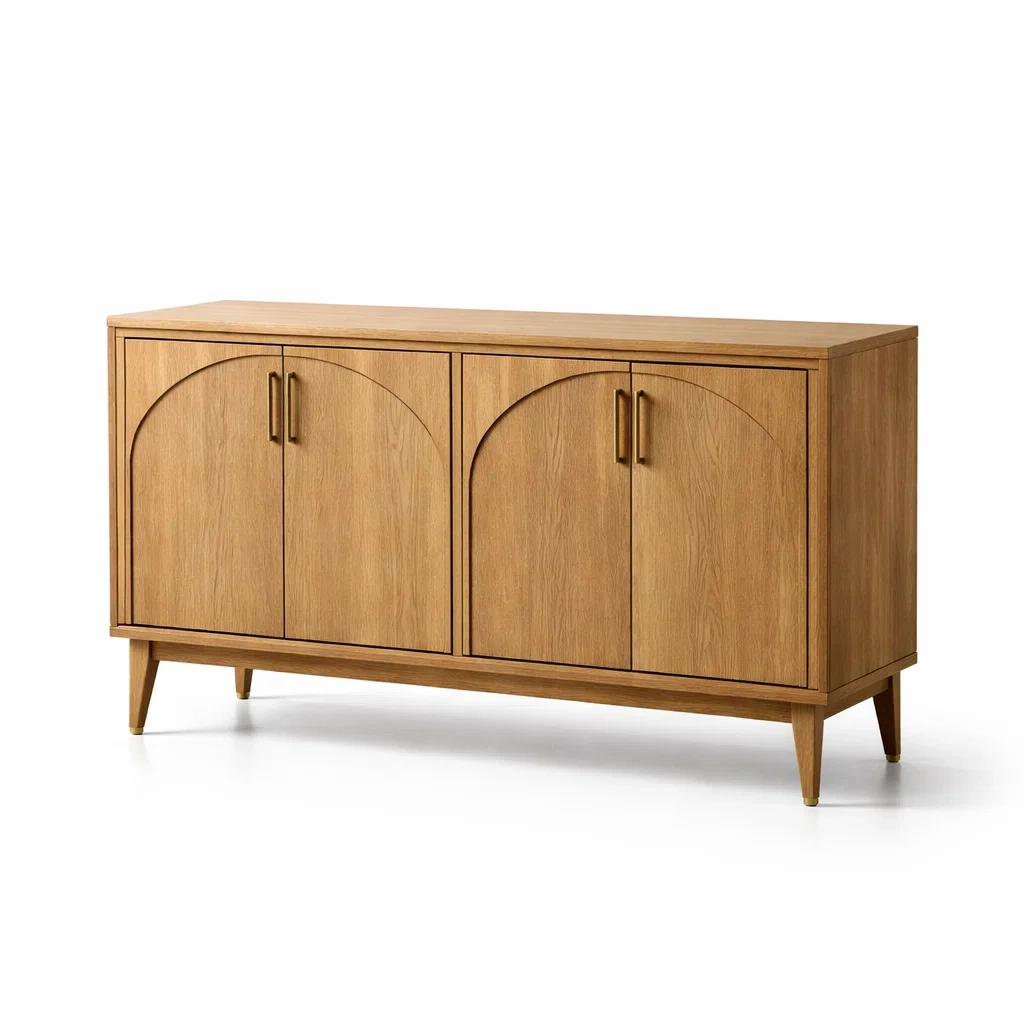 Buffet en bois de chêne et mdf beige avec tiroirs et portes