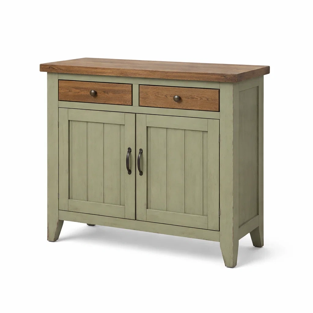 Buffet en bois avec plateau en chêne et structure verte