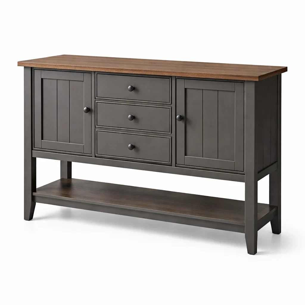 Il dispose de 3 tiroirs, 2 portes et une étagère inférieure pour le rangement.